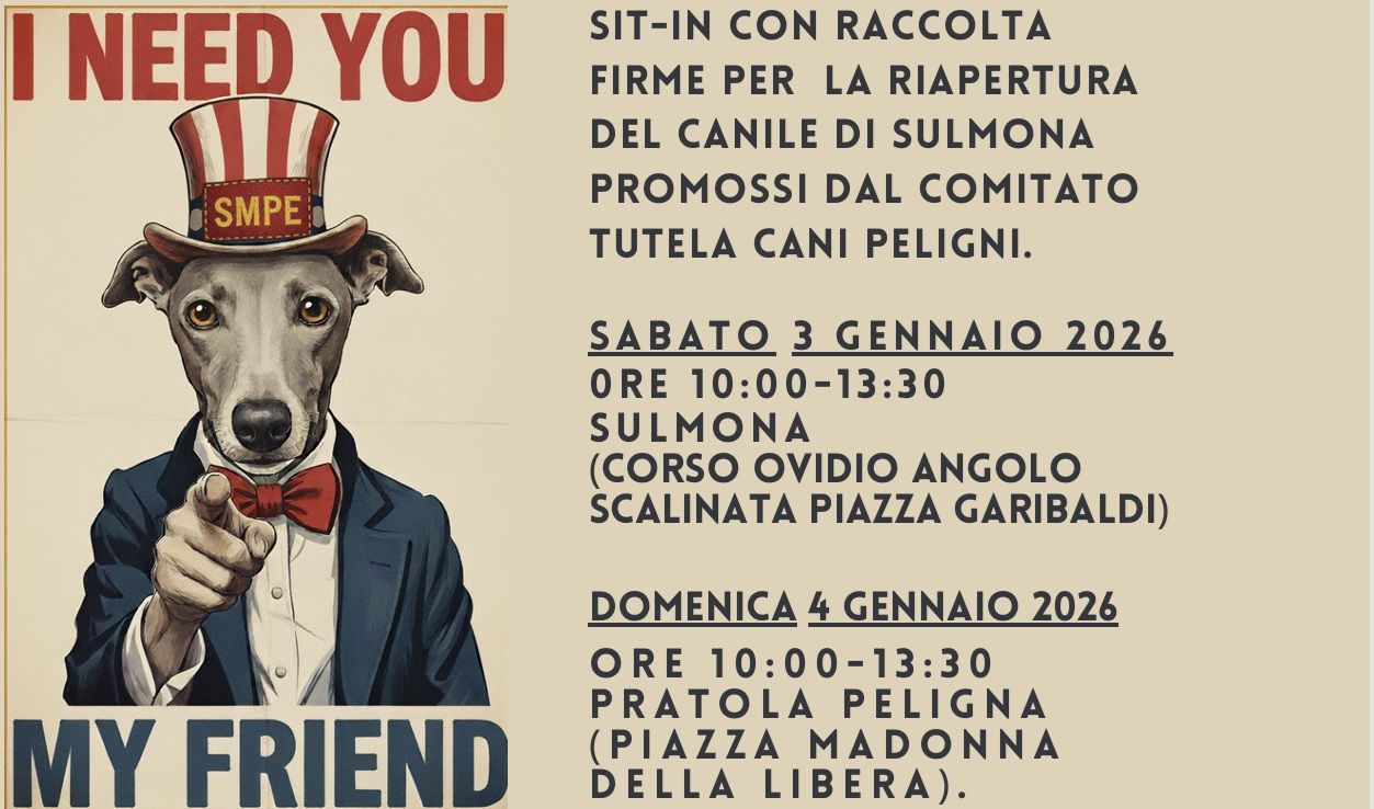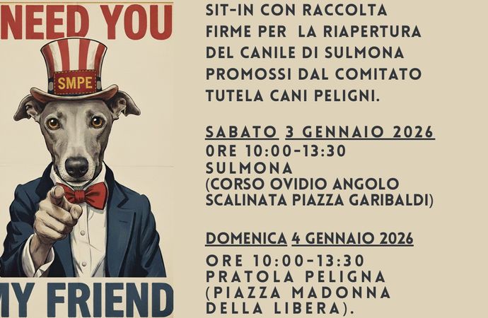 Il Comitato Tutela Cani Peligni annuncia due nuovi sit-in pubblici con raccolta firme per chiedere con forza la riapertura del canile comunale di Sulmona, ad oggi ancora vuoto e inutilizzato.