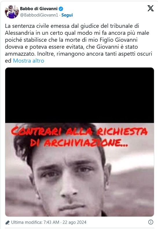 Tuttavia papà Iannelli, da anni cerca giustizia, affinché i responsabili, siano assicurati alla giustizia, nell'ambito di un processo penale, mai celebrato.