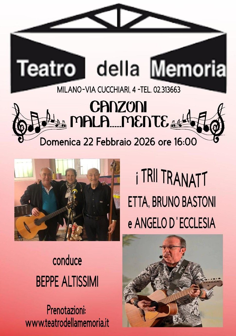 Domenica 22 febbraio alle ore 16 al Teatro della Memoria andrà in scena "Canzoni mala...mente".