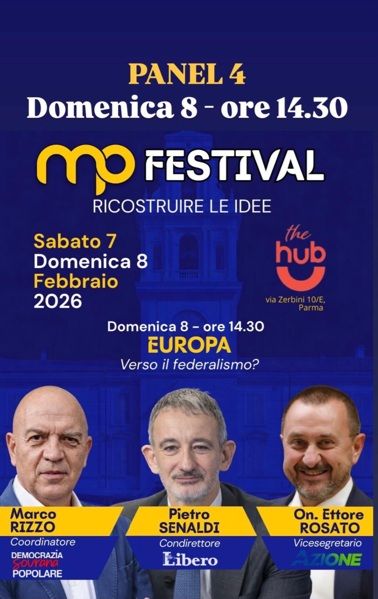 Sabato 7 e domenica 8 febbraio 2026, si terrà a Parma, nei nuovi locali di The Hub, in via Zerbini 10/E (dietro al Cubo di via La Spezia 89), "MP Festival Ricostruire le idee", il tanto atteso evento politico-culturale, con ingresso gratuito, e senza registrazione obbligatoria, promosso dall'Associazione Missione Parma, che ha organizzato questo evento, senza usufruire di alcun finanziamento pubblico.