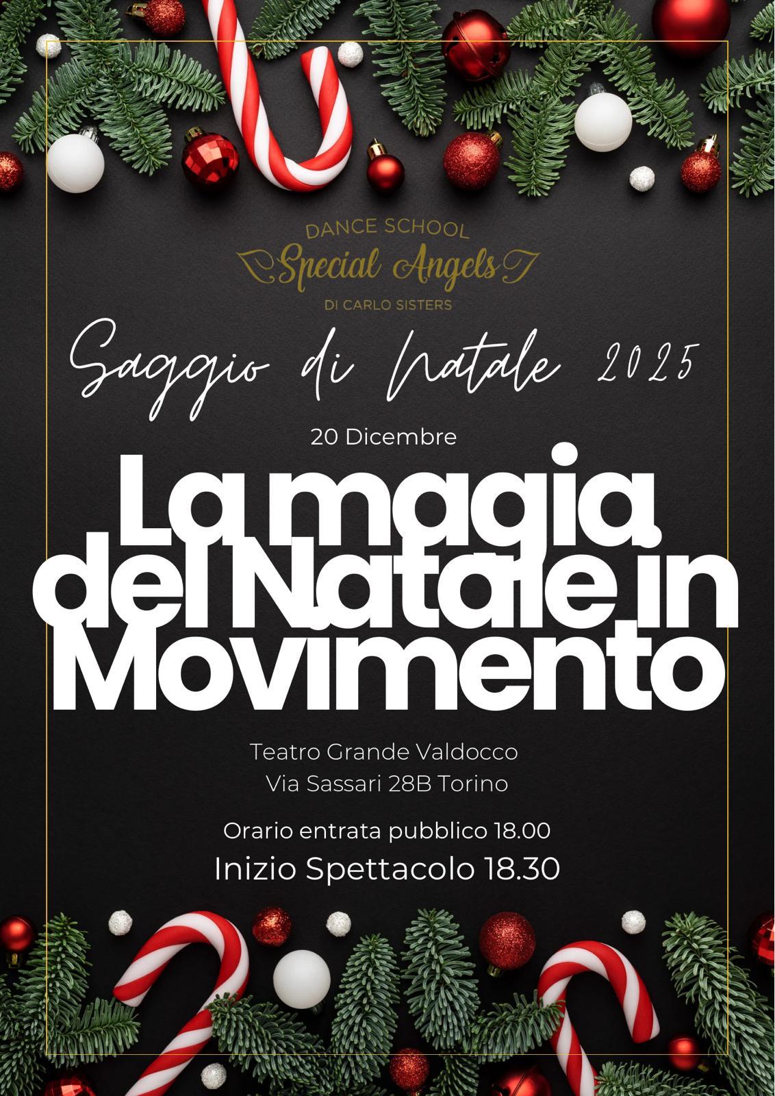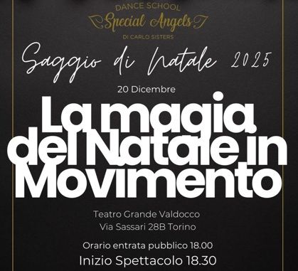 Sabato 20 Dicembre 2025, al Teatro Grande Valdocco, in Via Sassari 28B di Torino, alle ore 18:00, si terrà il saggio di Natale 2025, della Special Angels Dance School, uno spettacolo imperdibile, dove emozione e danza si fonderanno insieme in un'alchimia, che ancora una volta ci farà sognare.