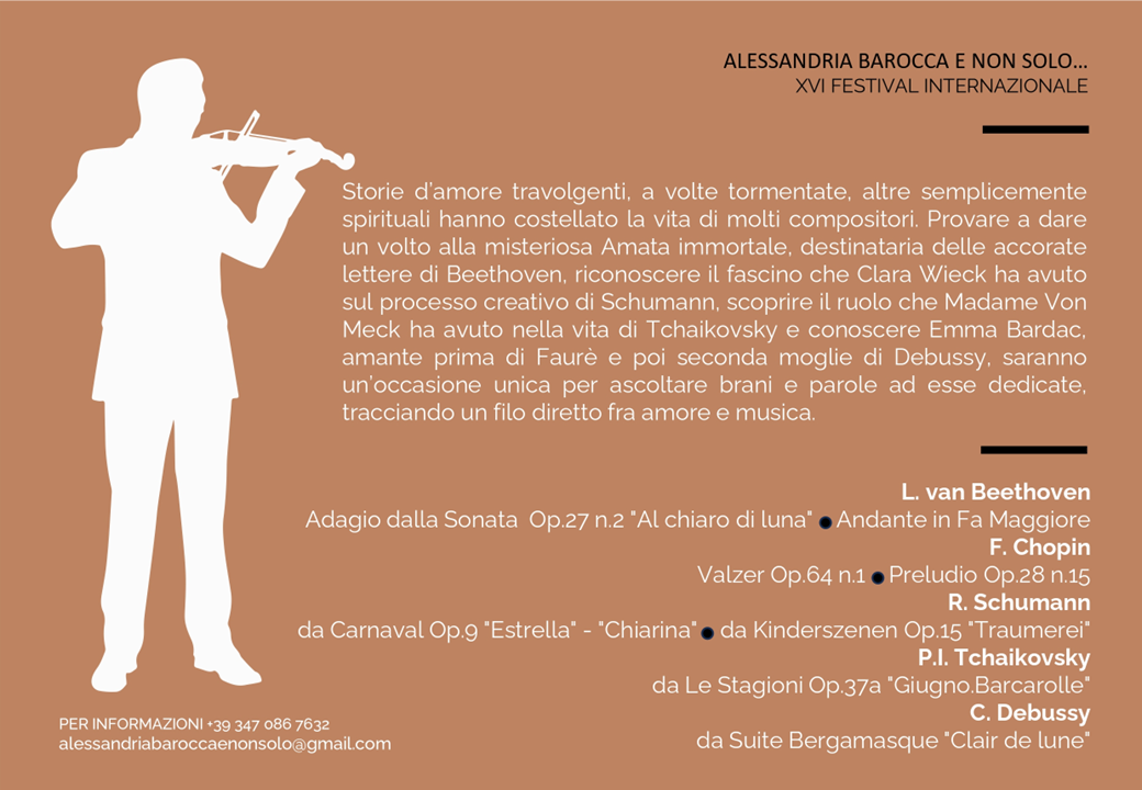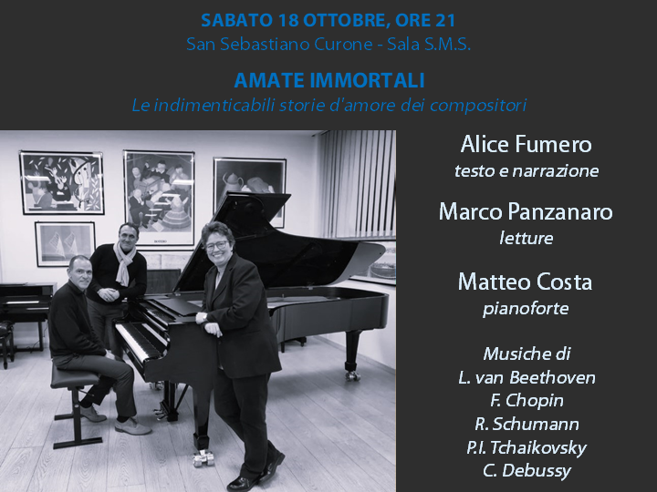 Dopo il rinvio forzato dello scorso settembre, il concerto-spettacolo “Amate immortali – Le indimenticabili storie d’amore dei compositori” andrà finalmente in scena sabato 18 ottobre, alle ore 21:00, presso la Sala S.M.S. della cittadina valcuronese.